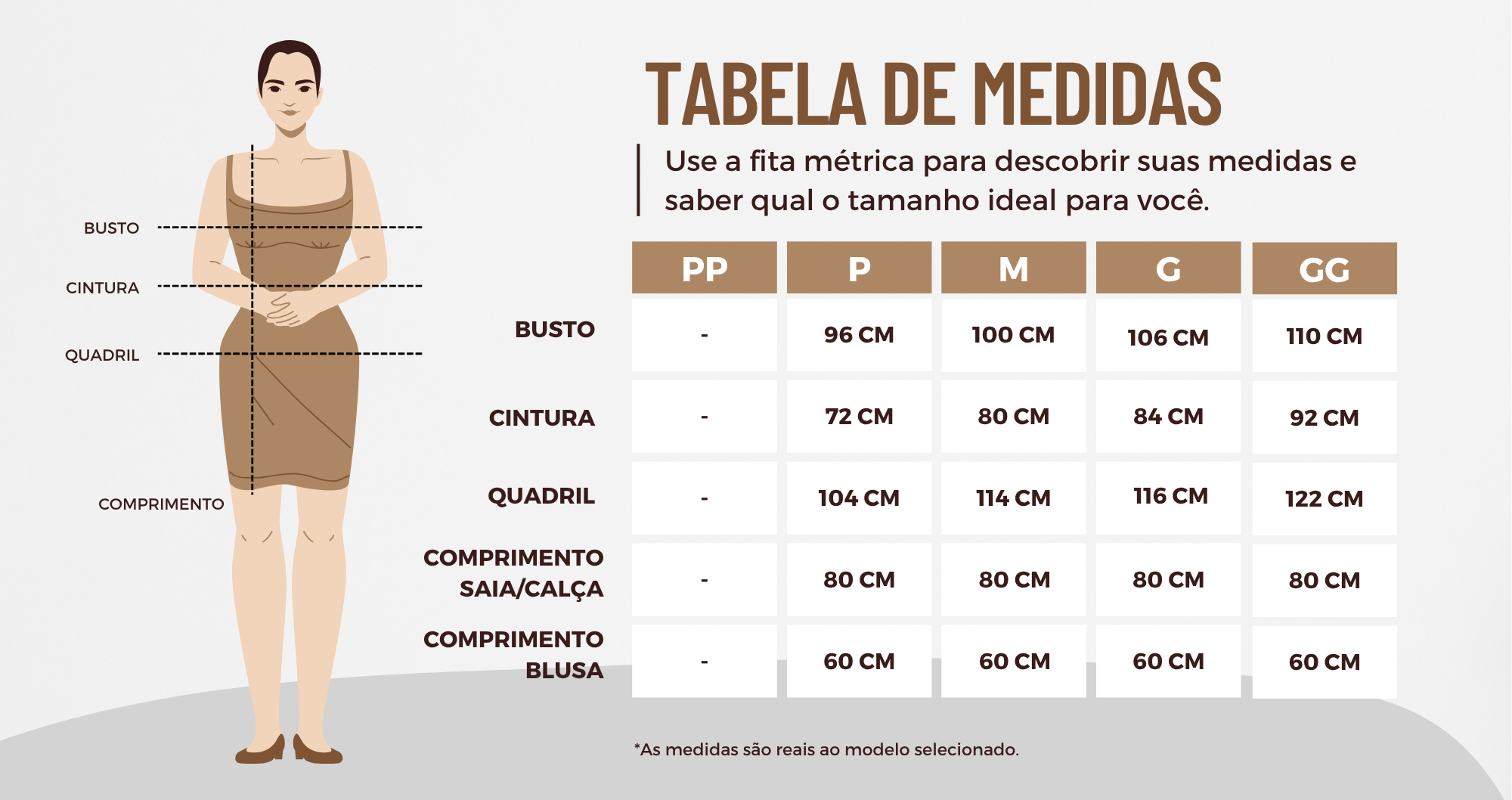 Tamanho: P- 38, M- 40, G- 42, GG- 44